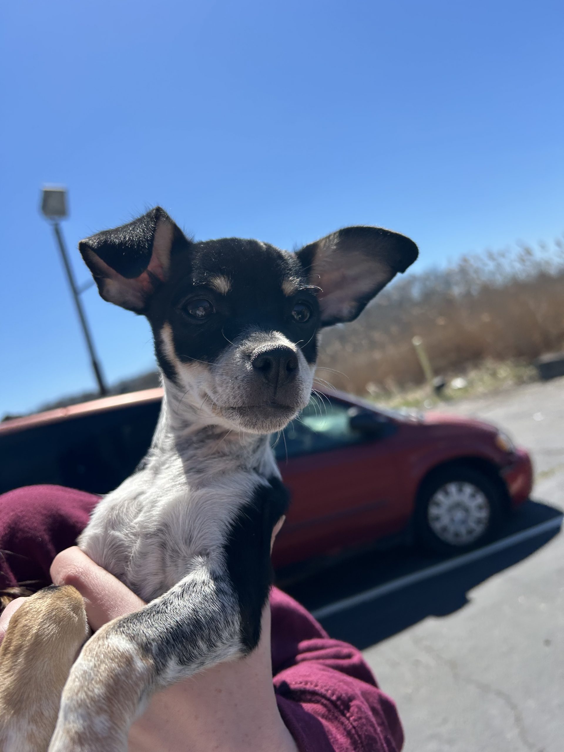 With her adorable black, white, and brown coloring and those puppy eyes, Violet is ready to find a family to grow up with and love forever.